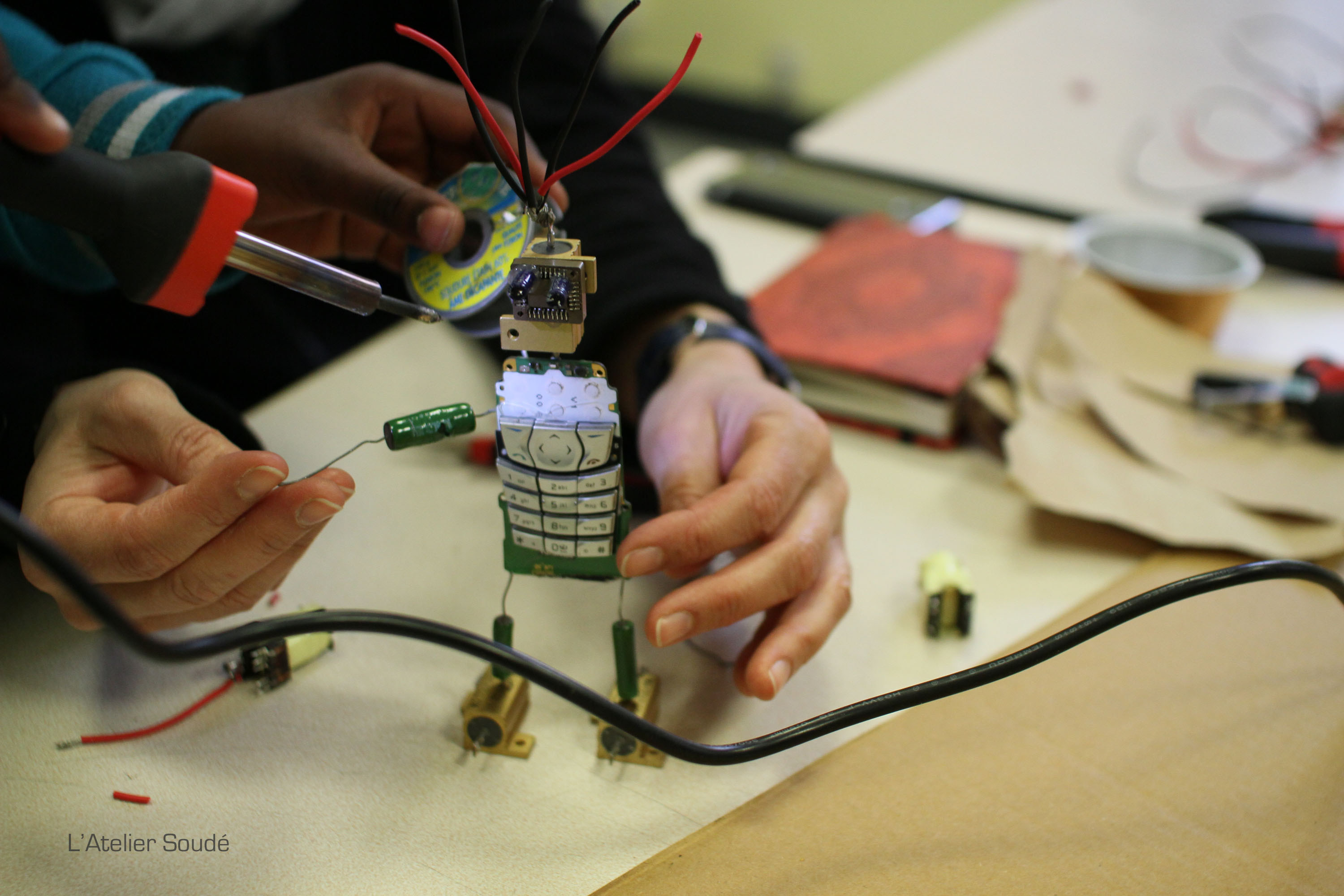 Le projet de l’Atelier Soudé inclut dès le départ une vision complète mêlant économie circulaire et économie sociale et solidaire : l’activité principale est l’accompagnement à la réparation d’appareils électroniques et électriques, avec bientôt 150 ateliers participatifs depuis deux ans, qui répondent à la fois à des problématiques environnementales, sociales, et économiques concrètes.