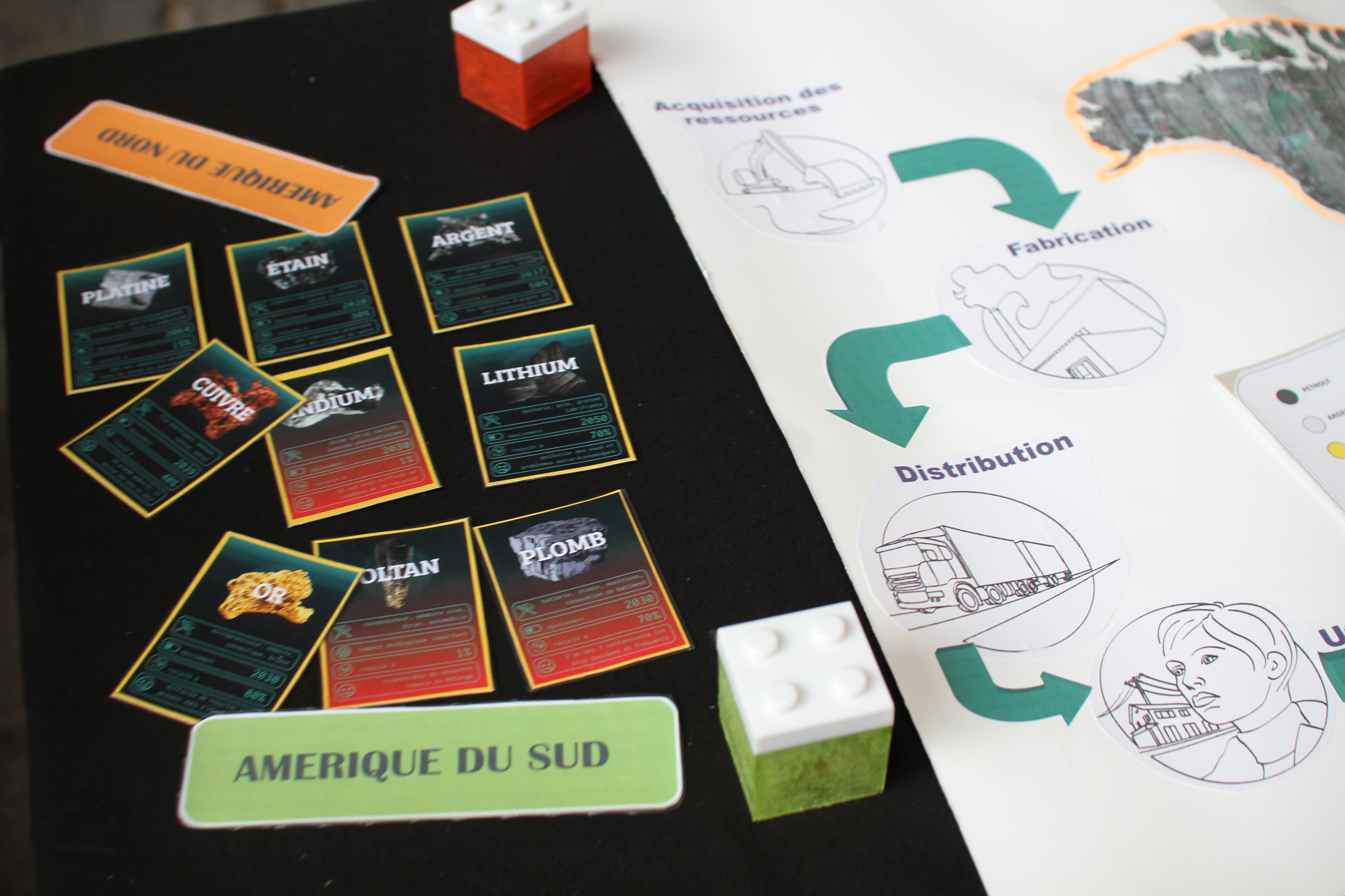 Ce format d’activité permet de balayer de manière ludique les étapes de vie de nos chers appareils électroniques et numériques. Les joueurs, de 10 à 20 personnes, vont devoir intégrer les différents continents, et endosser la responsabilité de gestion de leurs ressources, production d’appareils, et de déchets. On touche alors aux déséquilibres de répartition, à l’arbitrage commercial, à la prise de conscience des tonnages et types de matériaux en jeu, et au lien avec la consommation.