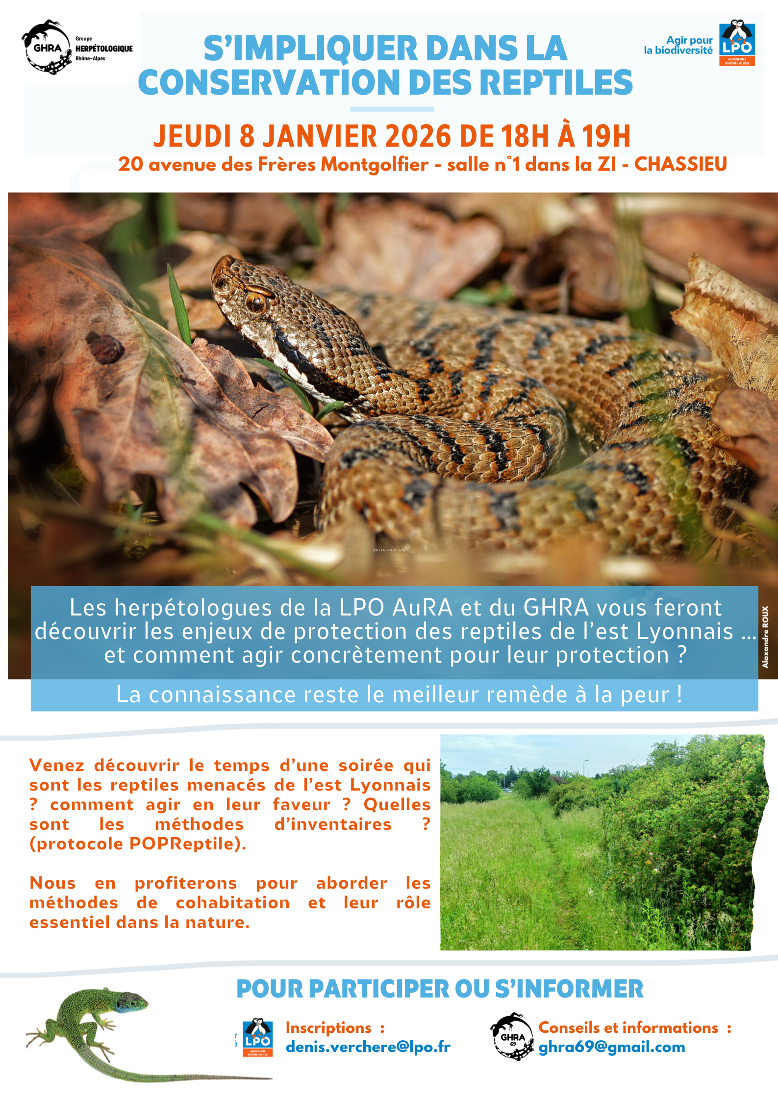 Présentation reptiles le 08 Janvier 2026 à Chassieu par GHRA et LPO AuRA